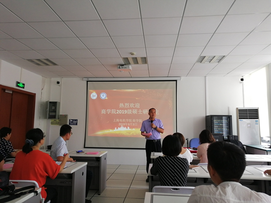 首先,马洪伟副院长向同学们介绍了与会的各位领导和老师。其次,富立友院长向2019级硕士研究生表示了衷心的欢迎,也对各位同学提出了要求和期望。徐金迪同学则代表本届新生做了发言。科研办公室杨白玫老师针对同学们最关心的培养方案,特别是课程选择和论文要求等方面,进行了详细讲述。项军书记也为各位同学就入党相关事宜进行了介绍。