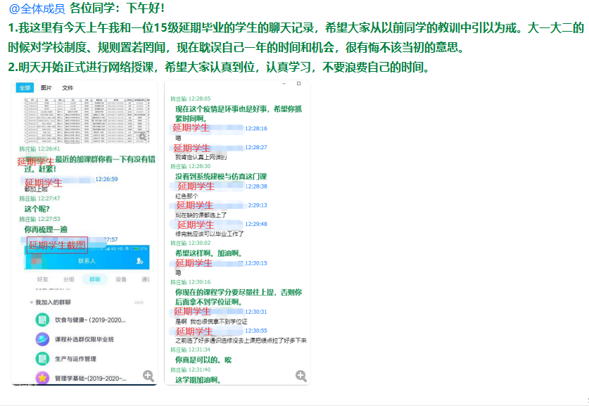 疫情之下,为确保应届毕业生顺利毕业,学院就业班主任点对点、一对一帮扶到位,帮助毕业生梳理课程学分,抓住最后的加课机会。辅导员陈庄瑜所带班级有一位延期毕业学生,为了确保该生今年顺利毕业,陈老师仔细分析他的学分完成情况,主动指导学生选课,给予正面支持和鼓励,并以此为案例希望其他毕业生引以为戒,提前做好毕业规划。