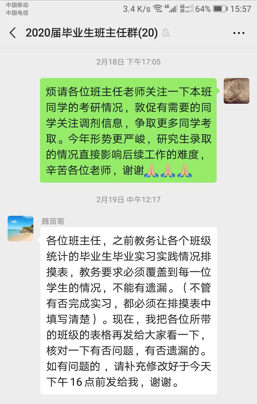每天早上醒来,打开手机查阅各类群内消息。转发、提醒教学通知,叮嘱、问候近期状况,这些看似平常的事情在疫情期间却成了我们每一位辅导员心里最牵挂的。“一个也不能少”这是辅导员符俊波心底的声音,他说:“也许我们不是冲锋在前线的战士,但我们愿成为每一位学生平安度过疫情的后盾。向光而行,期待春暖花开。”