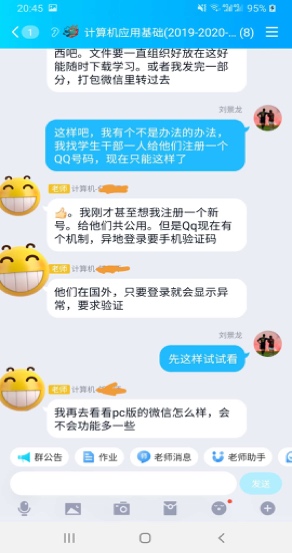 作为学校留学生人数最多的学院,如何协调管理学院87名国际学生如期开展网上学习,成为摆在全院师生面前的一项紧迫任务。学习平台皆为中文,国际学生看不懂怎么办?学院87名国际学生,有52人在国外怎么办?境内手机号码在国外无法注册绑定教学平台怎么办?一切难题,只有在实干中才能破解。针对语言困难,学院辅导员刘景龙和任课教师一起,制作英文指南,指导学生平台使用;为解决跨国教学难题,他主动与教务、教师、学生沟通对接,及时了解师生需求,密切掌握学生入驻情况,一对一指导学生注册;《计算机应用基础》这门课全班29个学生只有8人在国内,境外学生无法注册平台,面临无法如期网上开课的问题,刘老师主动找任课教师一起想办法,使得问题得以解决。在师生的共同努力下,学院国际学生基本能如期开展网上学习。居家办公对及时有效地开展工作造成了一定困难,刘老师有时难免着急,但看到家人每天冒着被传染的危险,早出晚归到车站抗疫一线值班,他又不断提醒自己一定要稳住,把工作做扎实。他说:“作为党员,我们必须与大局同频,与时代同步,把工作当事业干,把事业当使命干。我坚信,我们一定能打赢这场抗疫防控阻击战”。