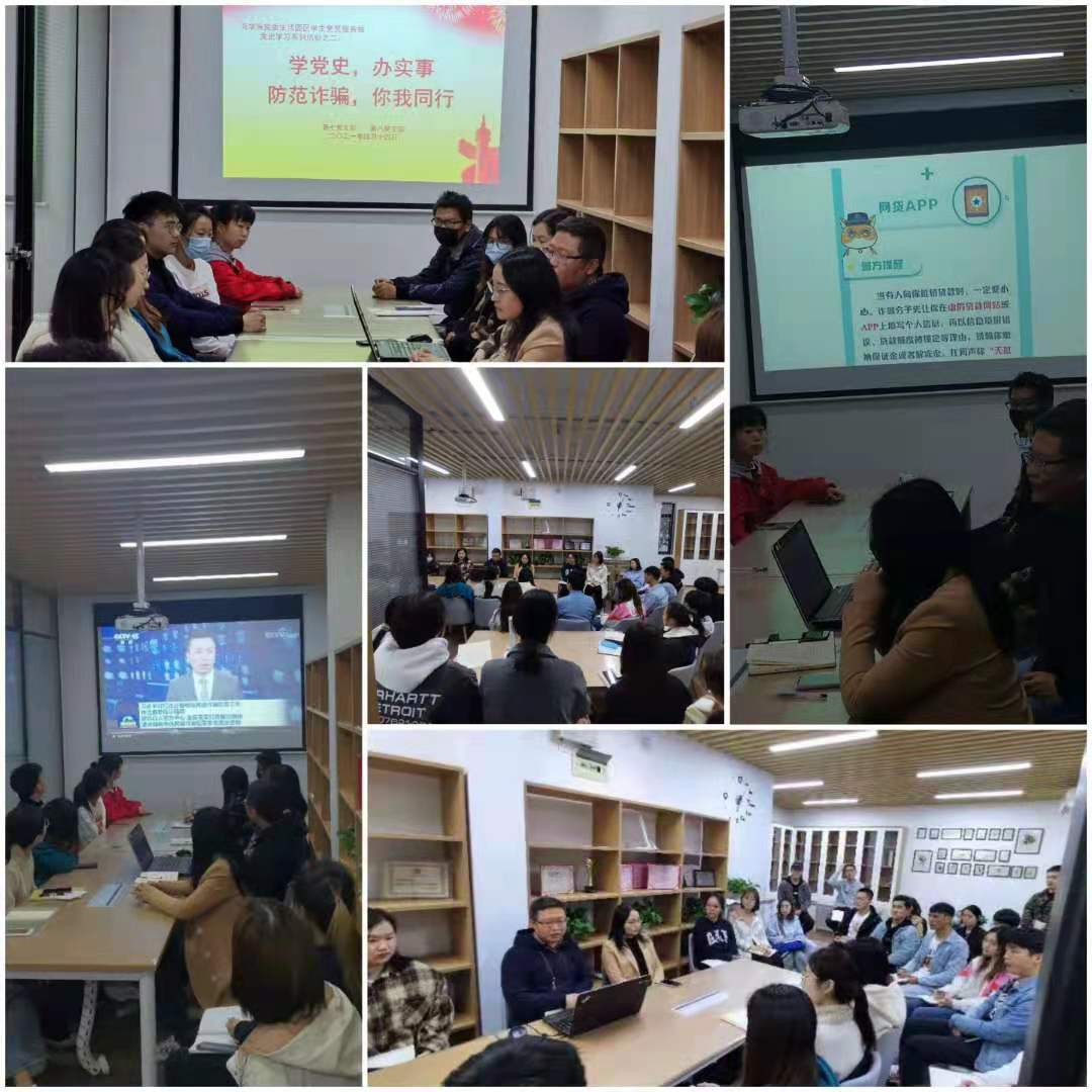 为落实开展上级党委“学党史,办实事”实践活动部署,进一步做实做细学校近期关于预防网络电信诈骗工作要求,beat365中文官方网站学生党员园区工作站于4月14日晚开展防范电信诈骗培训教育活动。beat365中文官方网站党委第七、第八党支部党员、发展对象等参加了此次活动。