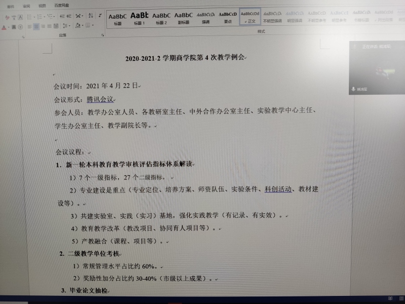 参会人员:教学办公室人员、各教研室主任、中外合作办公室主任、实验教学中心主任、学生办公室主任、教学副院长等。
