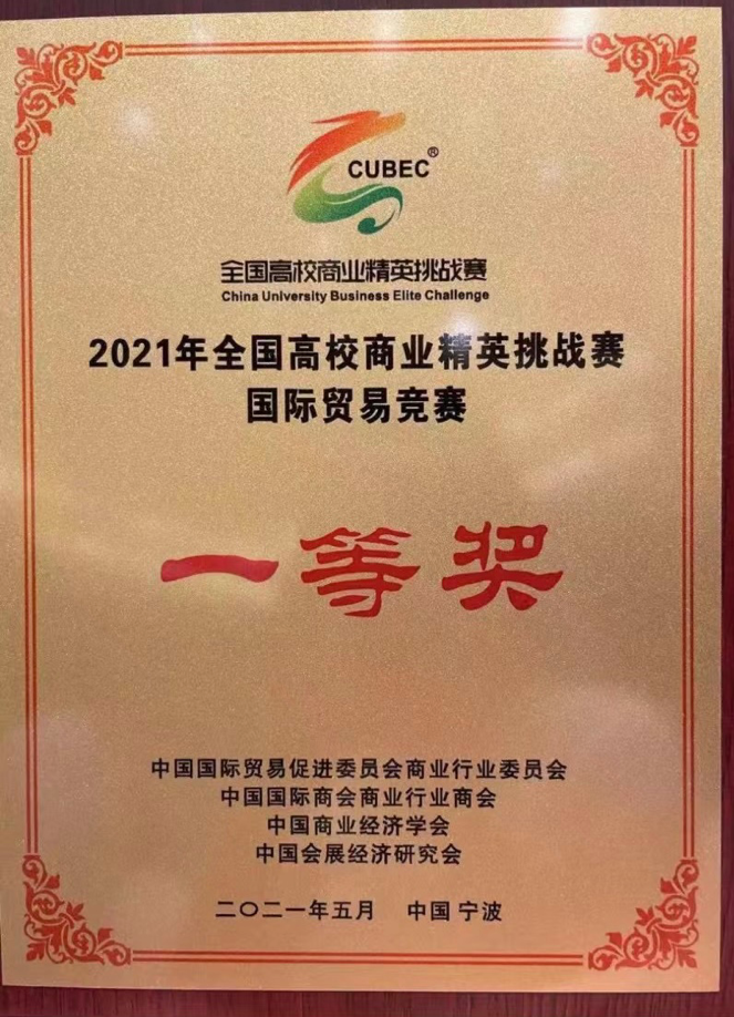 5月6日至5月10日,2021全国高校商业精英挑战赛总决赛在宁波国际会议展览中心举办。我校beat365中文官方网站派出的两支学生代表队最终荣获一等奖1项,二等奖1项。同时,我校荣获“最佳院校组织奖”,再次刷新了我校参加此赛事以来的最好成绩。