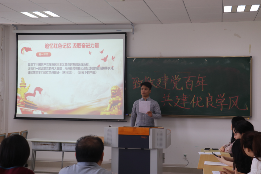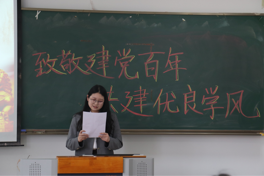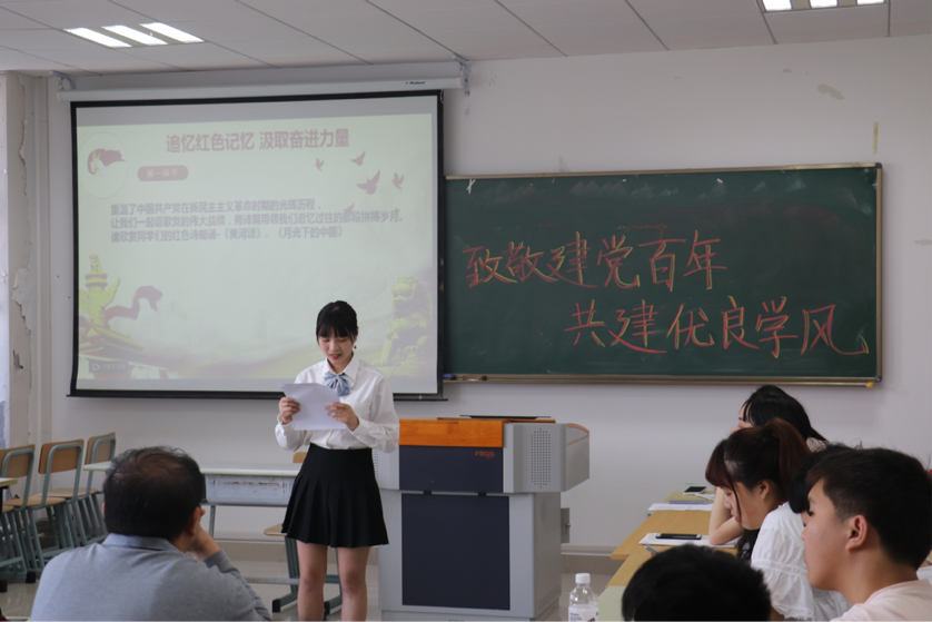 在重温了中国共产党在新民主主义革命时期的光辉历程后,三位同学站上讲台,用慷慨激昂,饱含热情的红色诗朗诵《黄河颂》《月光下的中国》等讴歌了党的伟大战绩,用诗篇带领我们追忆过往的那段拼搏岁月。