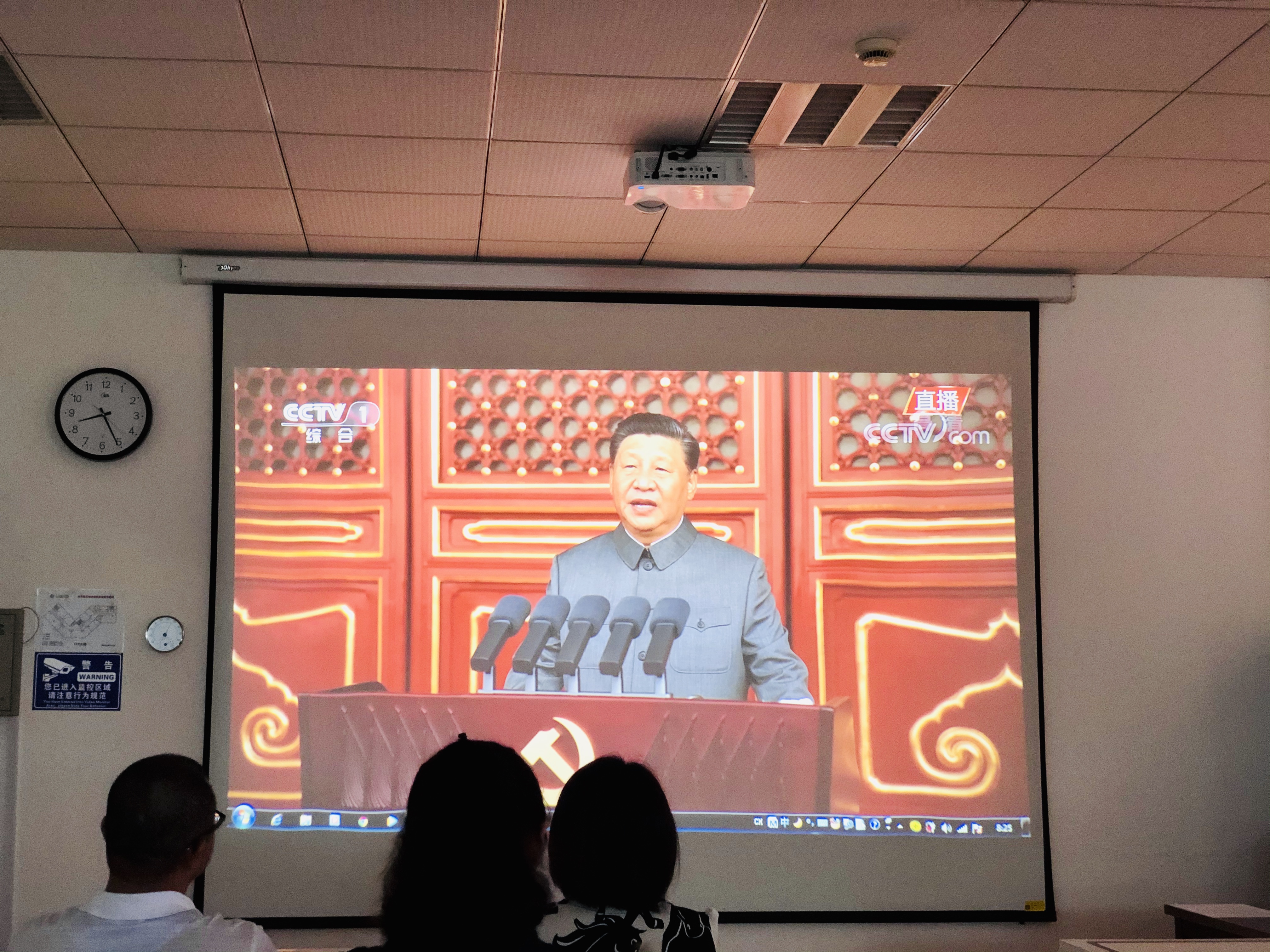 一世纪风雨兼程,九万里风鹏正举。7月1日上午8时,举世瞩目的庆祝中国共产党成立100周年大会在北京天安门广场隆重举行,中共中央总书记、国家主席、中央军委主席习近平发表重要讲话。beat365中文官方网站全体教职工于学院楼521共同收看盛况,见证党的百年荣光。