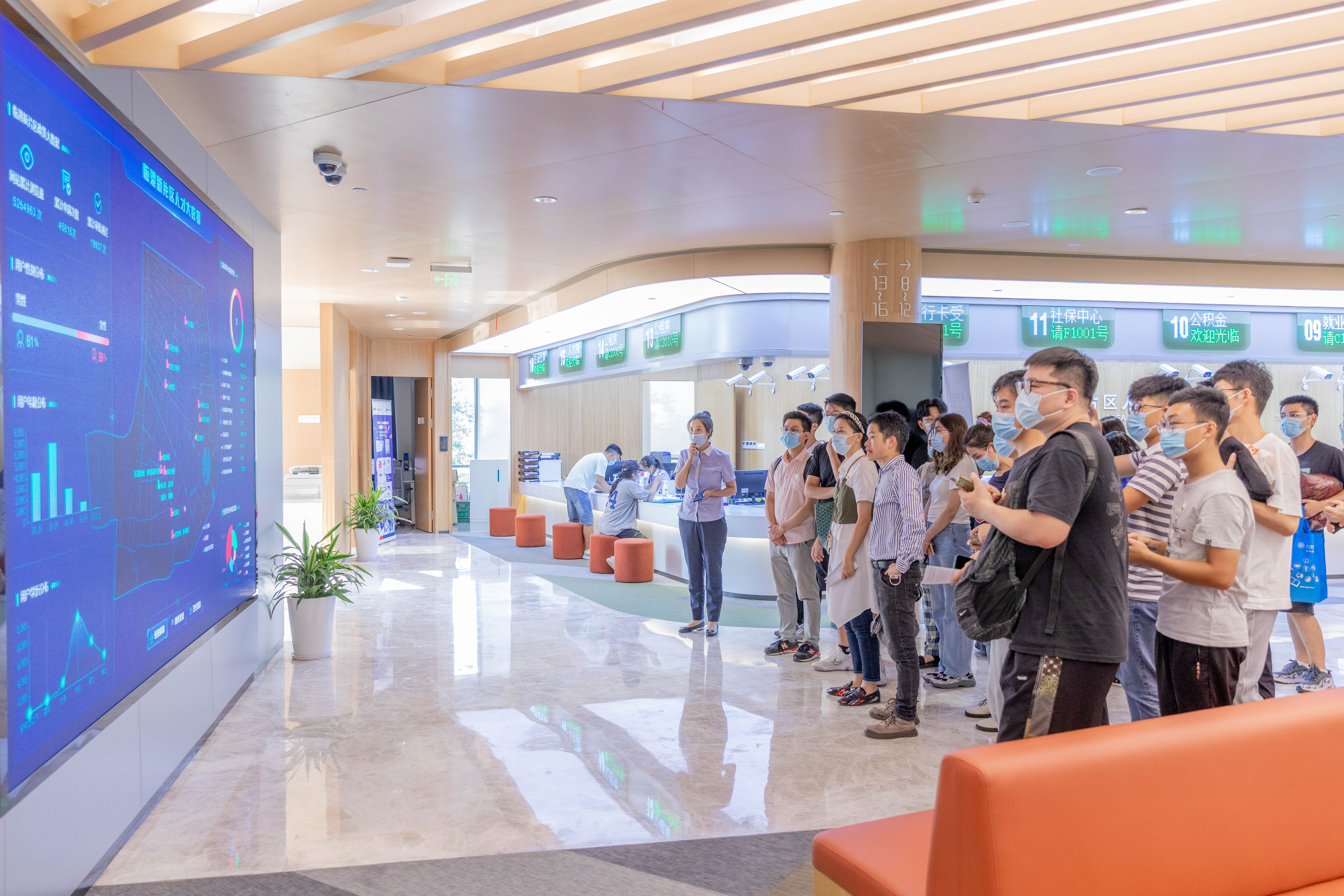 随后研究生党员们来到临港国际人才自由港和欧景人才公寓进行参观学习,感受新片区浓郁向上的产业氛围和催人奋进的创新动能。在临港国际人才自由港中,大家了解了当前临港新片区最新的人才政策和人才优惠,观看了二楼大数据中心,更加深入的认识到临港新片区对接国际的广阔视野,以及国内国外人才的汇聚。全方位了解了临港新片区的开放政策,以及在投资贸易、科技创新、产城融合等方面取得的丰硕成果。