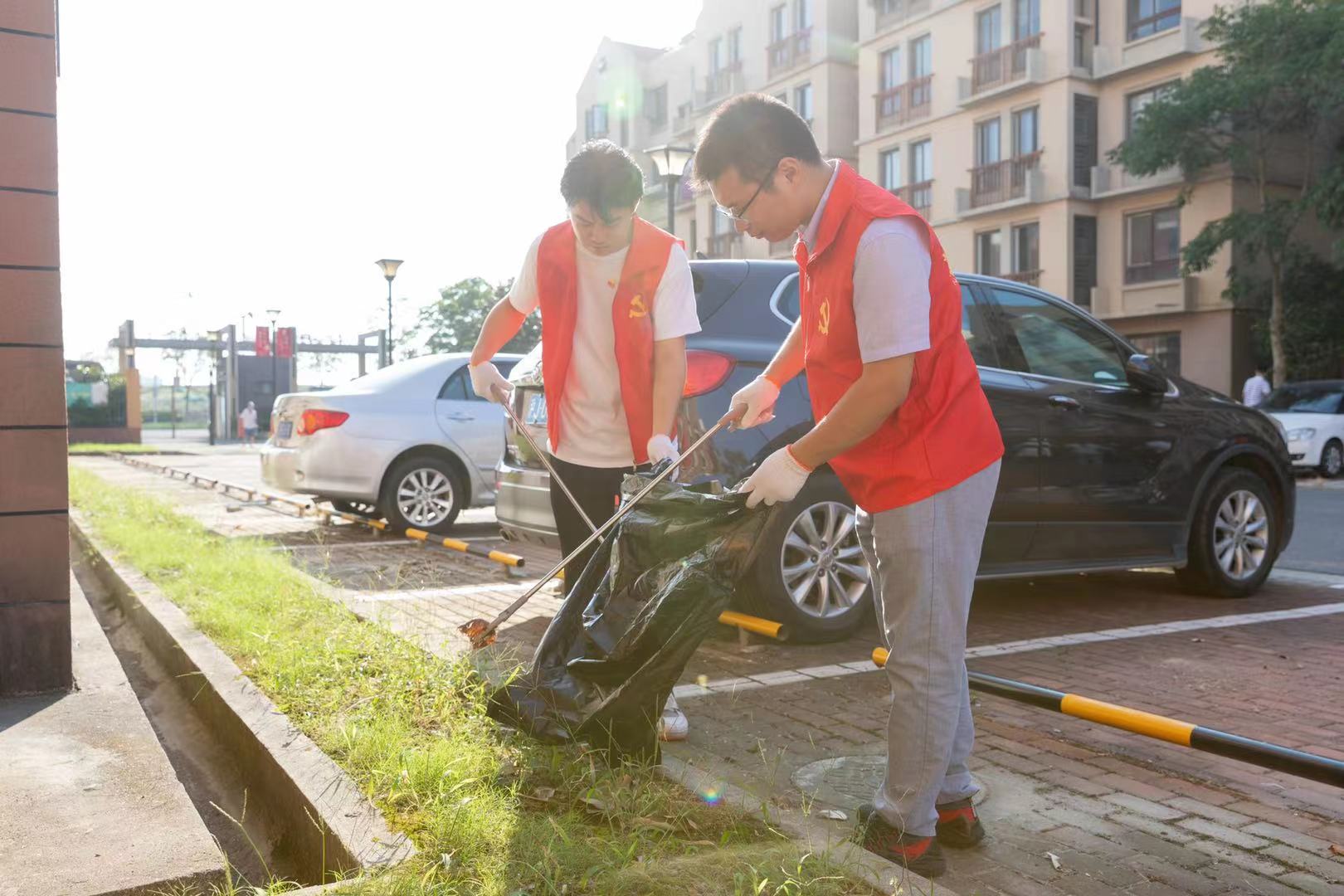 最后,了解到宜浩欧景一居委正在进行“十一”假期前的卫生整治工作,支部成员纷纷化身清洁员,对小区路段、人行道、绿化带的白色垃圾、果皮纸屑进行全面清理。大家不怕脏、不怕累,不留死角,使小区的卫生环境得到了明显改善。