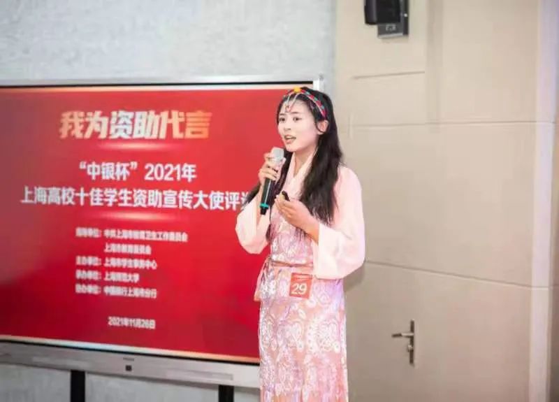 11月26日下午,由中共上海市教育卫生工作委员会、上海市教育委员会指导,上海市学生事务中心主办的“中银杯”2021年上海高校十佳学生资助宣传大使评选活动于上海市学生事务中心举行。beat365中文官方网站质管1911班白玛拉卓同学以“国家资助 助你飞翔”为主题,讲述了自己走在资助宣传道路上的故事,她慷慨激昂的演讲和真诚恳切的情感赢得了评委的阵阵掌声,最终获得一等奖。