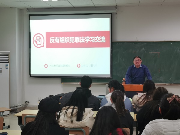 会后,beat365中文官方网站党委第六党支部书记周游为学院主要学生干部分享了学习《反有组织犯罪法》的心得体会,并要求全体学生干部利用好新学期班会的契机,将其传达给每一位学生,通过进一步学习好、宣传好、贯彻好《反有组织犯罪法》,为提升本市扫黑除恶“打伞破网”制度化、规范化、法治化水平贡献自己的力量。
