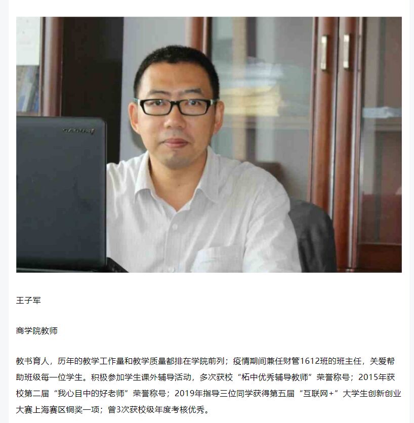 王老师:作为老师,教书育人是本职工作。其实我当时没有想太多,既然接手了这个班级,那就是尽我所能把这个班带好。最后整个班都顺利毕业,充分就业,带的还算是不错。