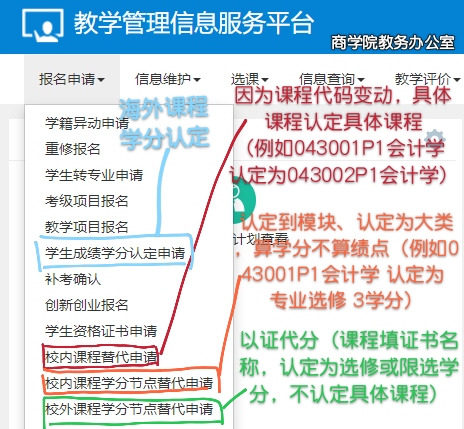1.校内课程替代申请(一门课程提交一条)