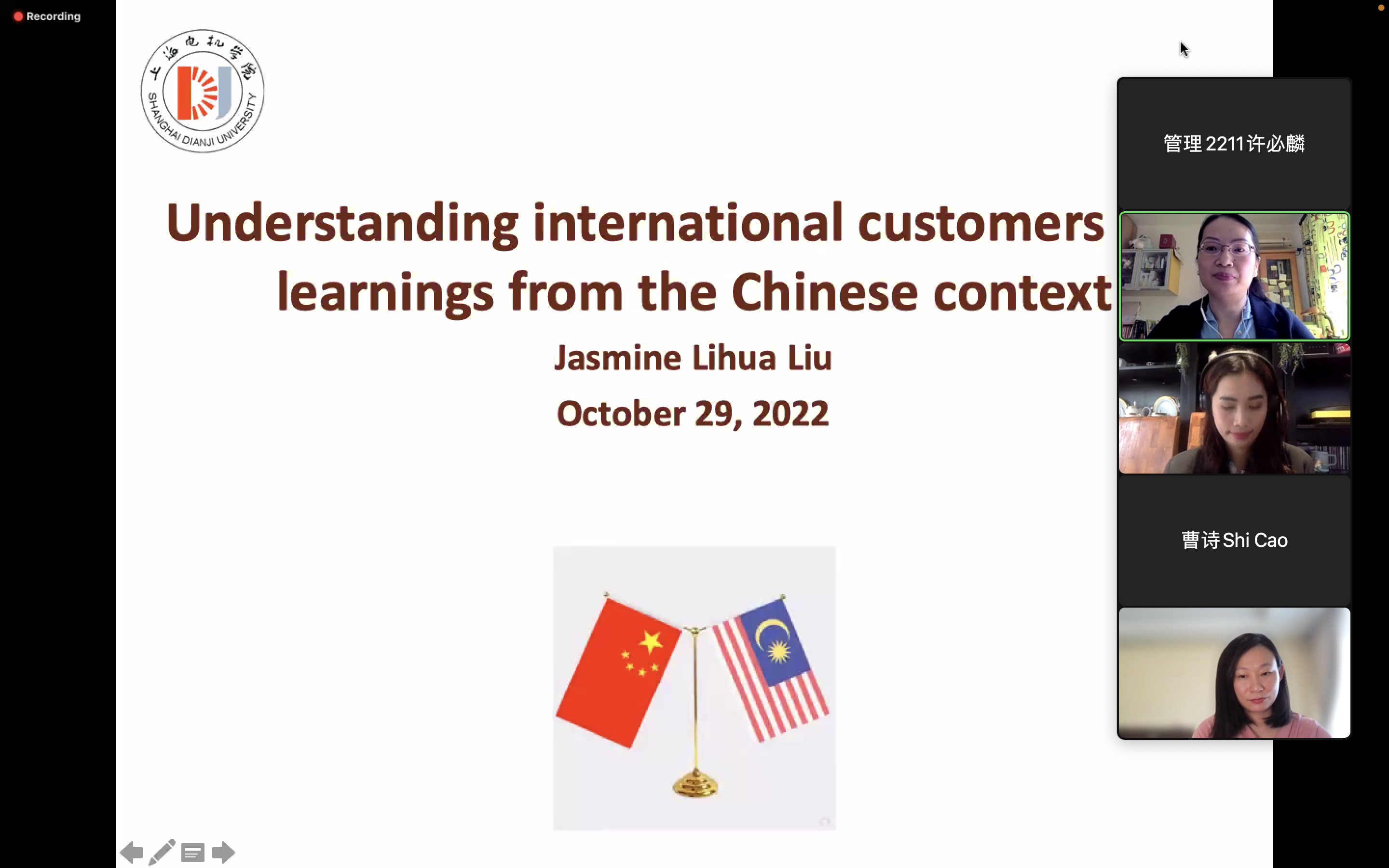 刘莉华老师以Understanding international customers ——learnings from the Chinese context 为题,探讨了文化情景对国际市场消费者的影响,剖析了中华农耕文明的起源、特点及其对中国消费者的影响,最终,专题讲座以中国消费者的新特色结束。刘莉华老师的报告,令马来西亚学生对中国悠久的历史文化有了更深刻的理解。
