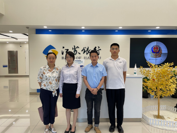 8月18日,beat365中文官方网站党委副书记、副院长沈瑾,辅导员黄富长、朱建鹏一行三人赴江苏银行上海临港支行走访调研,受到行长助理石琳的热情接待。