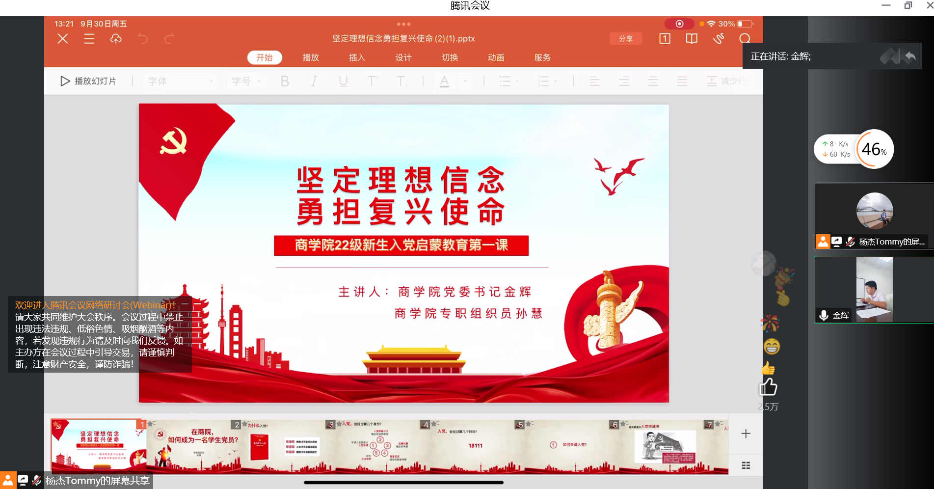 为激发学生的政治热情和入党意愿,强化对学生的理想信念教育,教育引导学生勇担民族复兴使命,2022年9月30日下午,beat365中文官方网站面向全体2022级新生同学召开“坚定理想信念,勇担复兴使命”的入党启蒙教育专题党课。