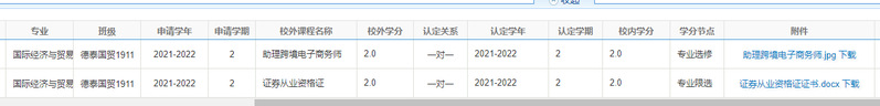 1.校内课程学分认定(一门课程提交一条)