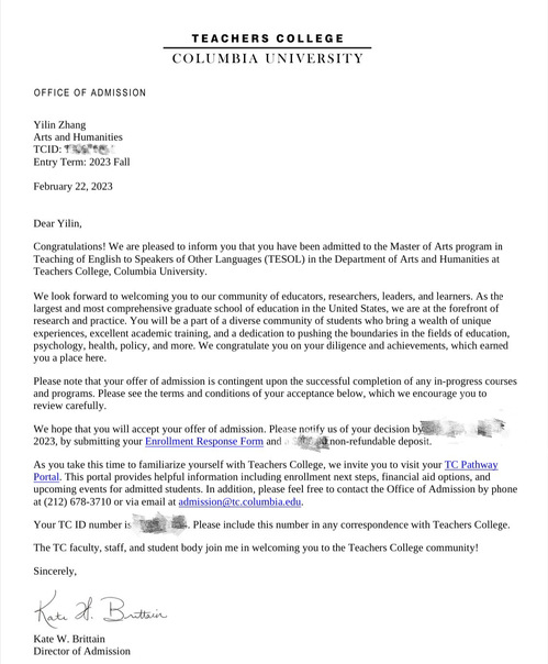 Although the whole application process consisted of dilemmas and challenges, thanks to all the invaluable support and assistance I received from school, parents, and friends, I successfully submitted all of the mandatory application materials before the final deadline of my applications. Afterward, I was fortunate to hear feedback from multiple universities I applied to initially, including Columbia University. The long-lasting dream of getting admitted to those elite schools has become a reality.