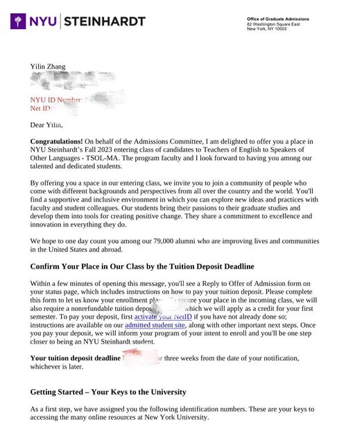 Already received multiple offers, including Columbia University(in the city of New York, USA), New York University(USA), University of Melbourne(Australia)