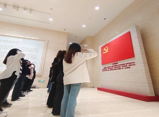 展览厅内,党员同志们先后参观了“历史选择、伟大起点”“前仆后继、救亡图存”“民众觉醒、主义抉择”“早期组织、星火初燃”“开天辟地、日出东方”“砥砺前行、光辉历程”和尾厅。面对宣誓墙,与会党员整齐列队、高举右拳,重温入党誓词。通过参观展馆内的文物、影像以及雕塑,同志们接受了一次沉浸式的思想洗礼,更深刻地领悟到“坚持真理、坚守理想,践行初心、担当使命,不怕牺牲、英勇斗争,对党忠诚、不负人民”的伟大建党精神。同志们纷纷表示,将以实际行动保持党员的先进性,践行全心全意为人民服务的宗旨。