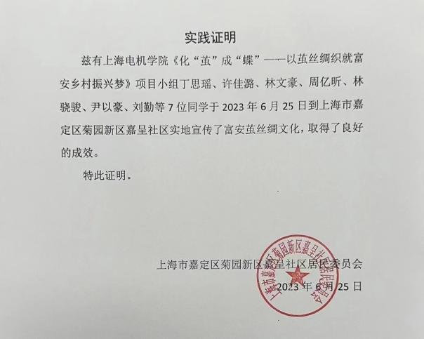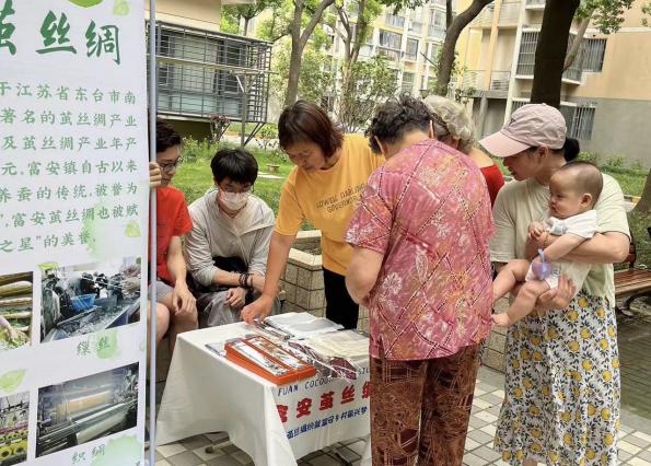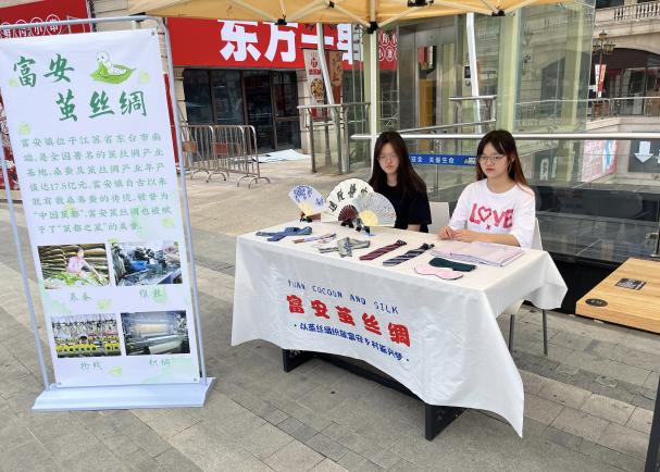 值得一提的是,实践团为普陀区真源小区的小朋友们开设了一次“走进非遗——富安茧丝绸”专题宣讲课,向小朋友们展示茧丝绸工艺品,带他们亲身体验缫丝工艺。实践团成员通过牵线搭桥,实地走访与某公司签订代理销售协议,并由该公司代理富安茧丝绸公司所生产的产品在上海区域的销售,有效拓宽了富安茧丝绸产品的销路。