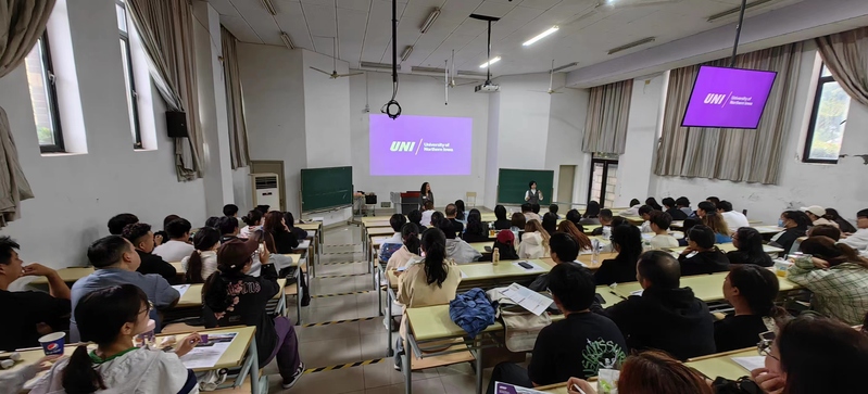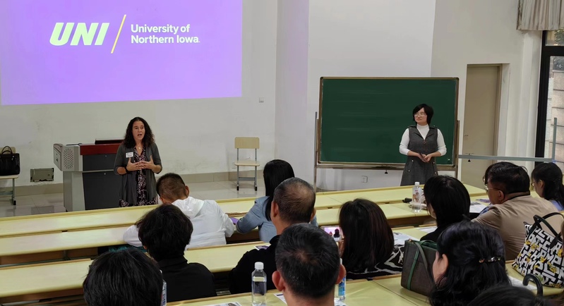 In order to effectively promote our school's internationalization strategy, better achieve the expected goal of cultivating international talents through the 2+2 Sino US cooperation project, and enable students and parents to have a deeper understanding of our school's 2+2 Sino US cooperation project, the School of Business of Shanghai Dianji University held a project lecture and a new parents' meeting on the afternoon of October 13th at Faculty A, 116, Lingang Campus. All freshmen and sophomores of the 2+2 Sino US cooperation project, as well as parents, were invited to participate. This parent-child meeting was hosted by Professor Wang Shuo, Director of the International Cooperation Program Office at the School of Business. Together with Kristi, Director of the International Admissions Office at the University of North Iowa, they introduced the training mode, school location, safety environment, teaching format, global reputation and ranking, major settings, application conditions, and shared the stories of outstanding graduates from previous years of the project. Pointed out the direction for students' academic planning, career planning, and life planning.