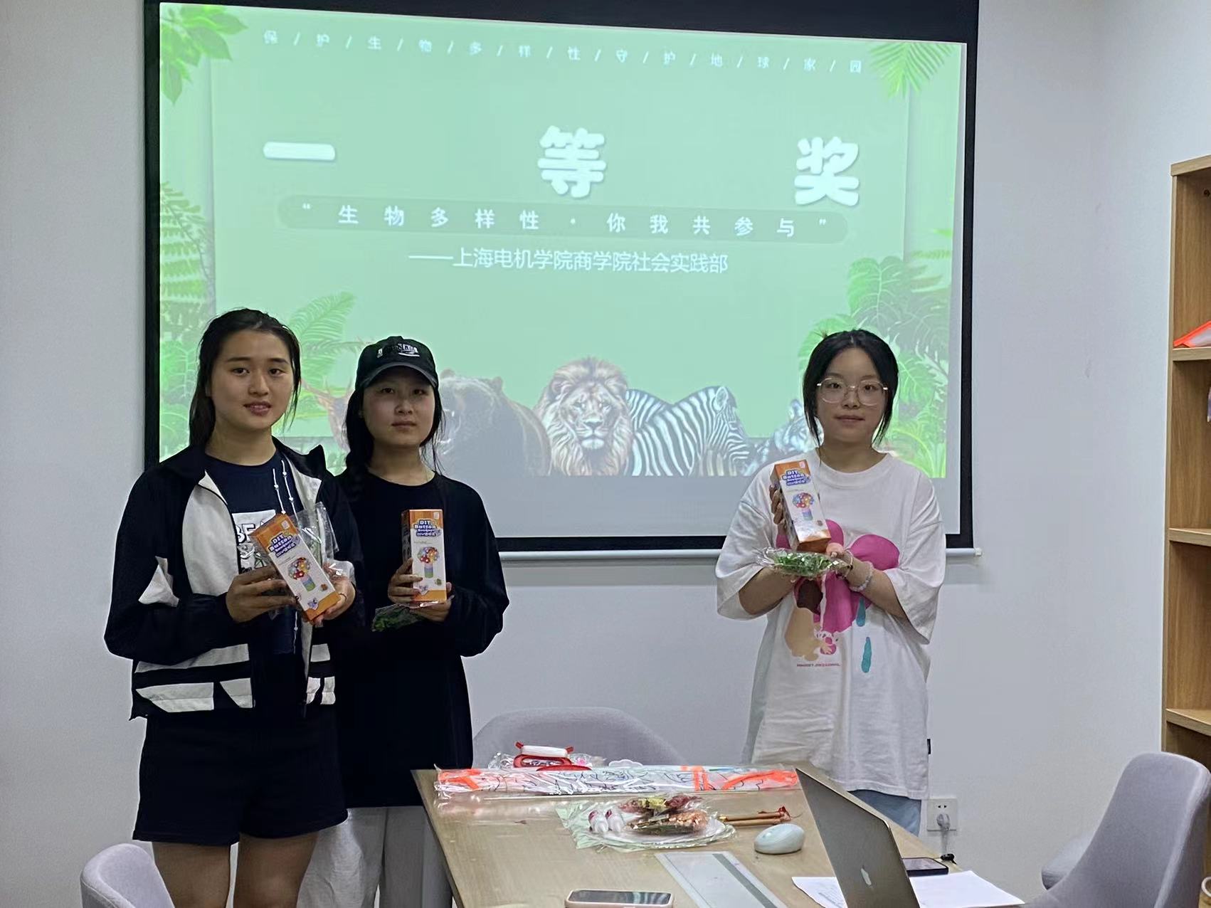 在知识竞赛环节,同学们被分为五组参与抢答,大家踊跃举手,现场气氛活跃十足,参加活动的同学也纷纷表示,在知识竞赛的环节中对于在我国实行“双碳”背景下做好生态环保、促进生物多样性的重要作用有了进一步理解。临近尾声,beat365中文官方网站社会实践部为本次知识竞赛获奖的小组颁奖,各位同学都在自己和团队的努力下拿到了心仪的奖品,也在这次的活动中更为深刻了解到国际生物多样性的保护不仅仅局限于理论,更需要我们每一个人力所能及地去参与、去践行习近平生态文明思想的伟大实践。