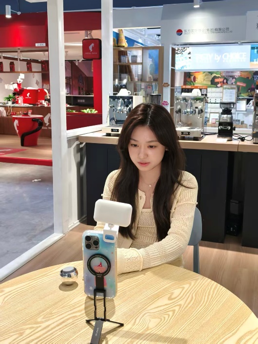 王钰倩同学则在市场部担任新媒体运营岗位,负责企业宣传推广的日常工作。从活动现场的照片、视频拍摄与剪辑,到公众号、视频号等平台的内容制作与推送,她以青年视角和创新手法为企业注入了新鲜活力。9月初,她还结合全球咖啡市场变化与中国咖啡产业崛起的趋势,策划录制了短视频《“咖啡通胀”席卷美国,全球咖啡进入“中国时代”》,用镜头和创意为虹桥品汇新媒体传播提供了极具价值的内容素材。与此同时,她还会协助市场部推动展销活动,在沟通协调与执行力方面得到了较为全面的锻炼。