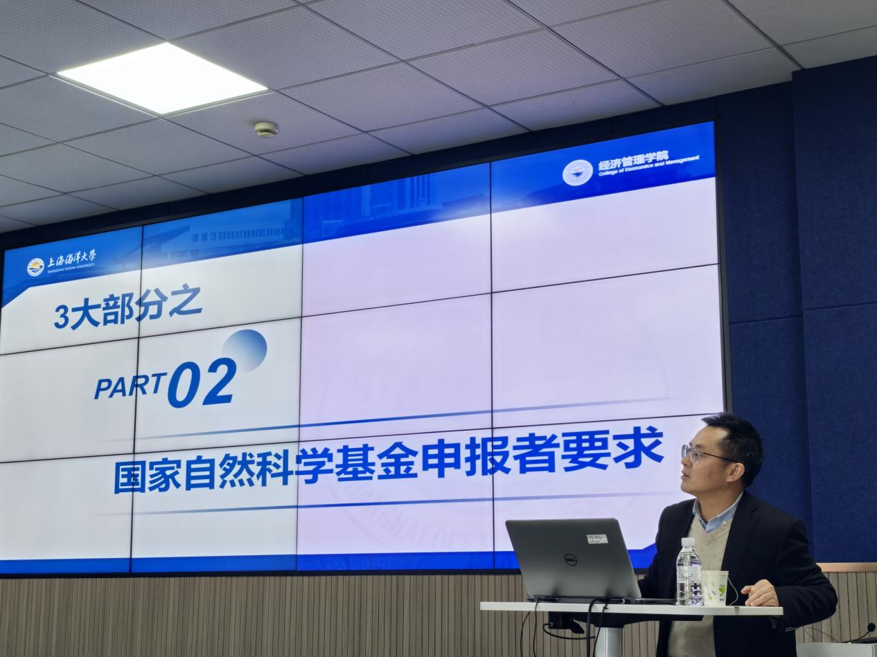 2026年1月9日下午,beat365中文官方网站成功举办“国家自然科学基金申请经验交流”专题讲座。本次讲座特邀上海海洋大学经济管理学院院长、博士生导师杨正勇教授担任主讲,吸引了beat365中文官方网站众多教师和硕士研究生积极参与。讲座旨在帮助教师深入了解国家级基金项目的申报动态、撰写技巧与政策导向,为学院学科建设与科研水平提升注入新动能,同时,从学术生涯规划的高度,为研究生们带来了深刻的启发与前瞻性的指导。
