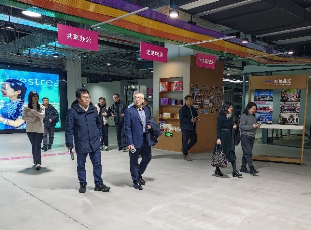 研讨会后,王志恒校长一行参观了长三角低空经济展贸中心和6+365进博会溢出效益平台,近距离了解了虹桥品汇的低空汇谷、上海国际友城港、虹桥国际咖啡港和直播基地,并就双方如何结合大虹桥发展针对性地开展商科人才培养进行了交流。
